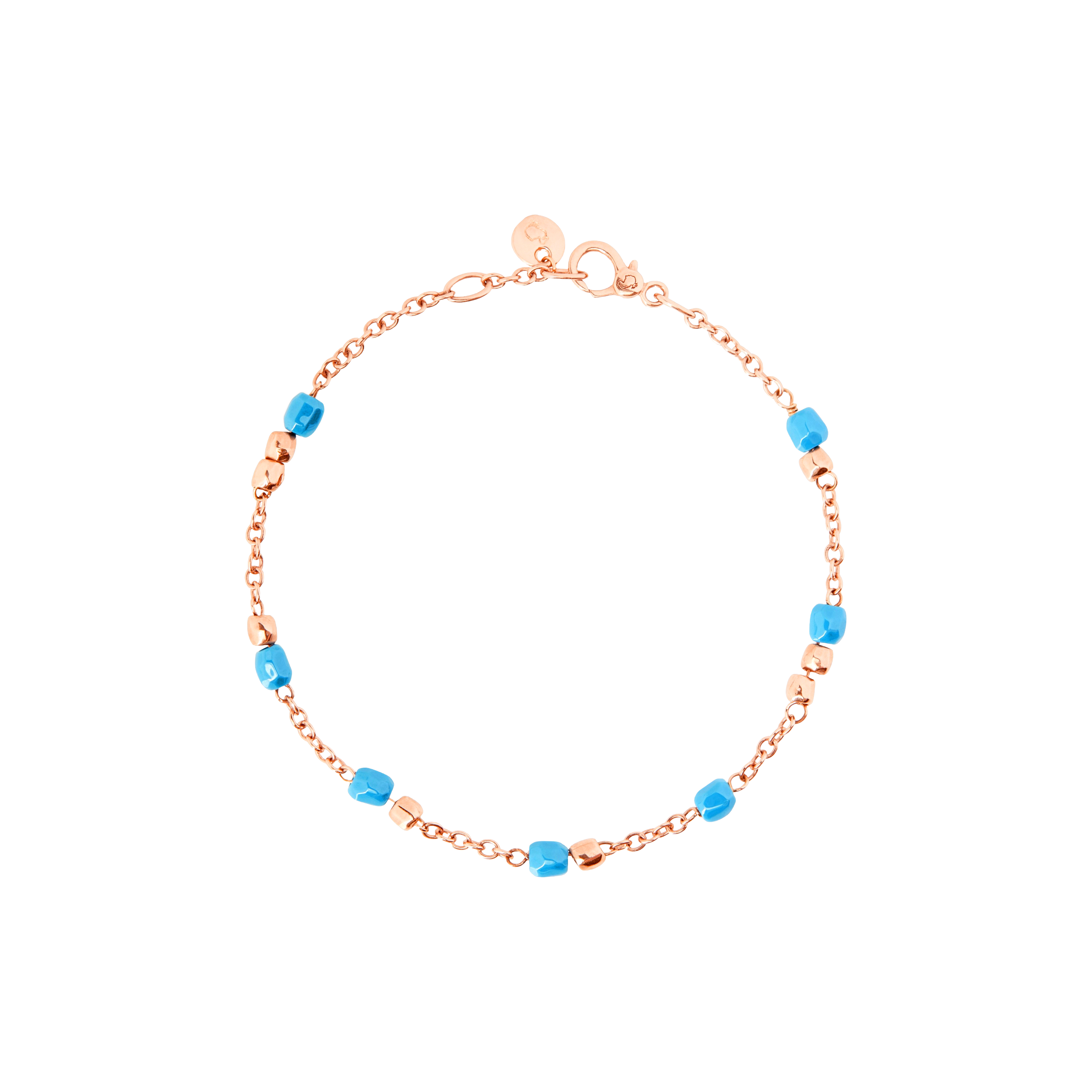 Bracciale mini granelli in oro rosa 9K e ceramica turchese.