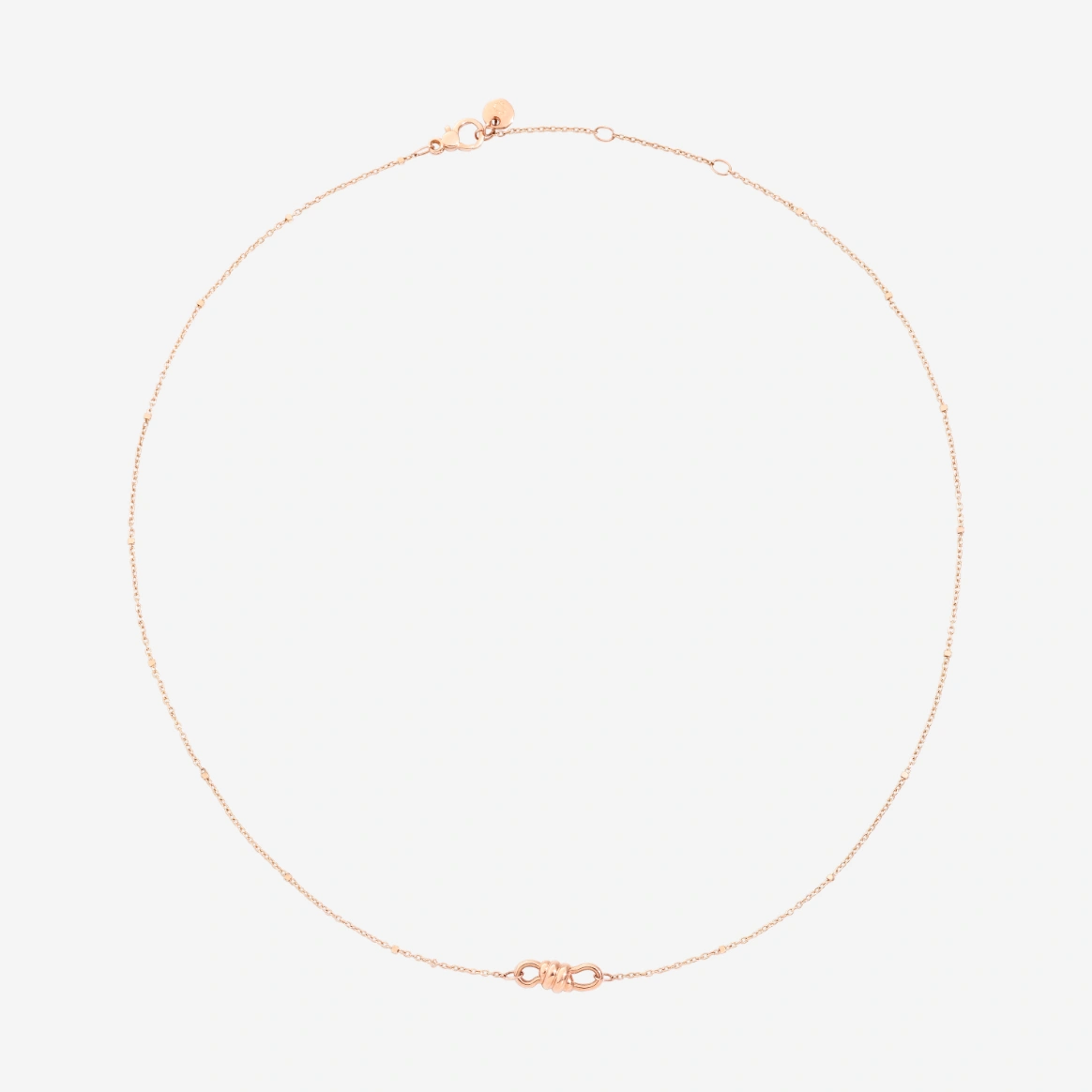 Collana in oro rosa 9K con pendente mini nodo in oro rosa 9K. Piastrina in oro rosa 9K.