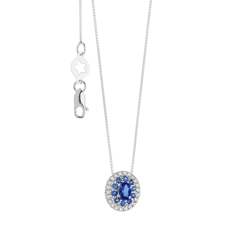 Girocollo in Oro Diamanti e Zaffiri blu