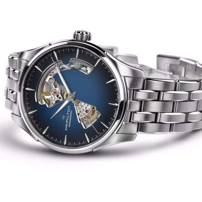 Un vivace quadrante sfumato focalizza l’attenzione sulle precise traforature del Jazzmaster Open Heart. Garantendo uno sguardo all’affascinante movimento interno, il suo stile contemporaneo è unico e versatile.