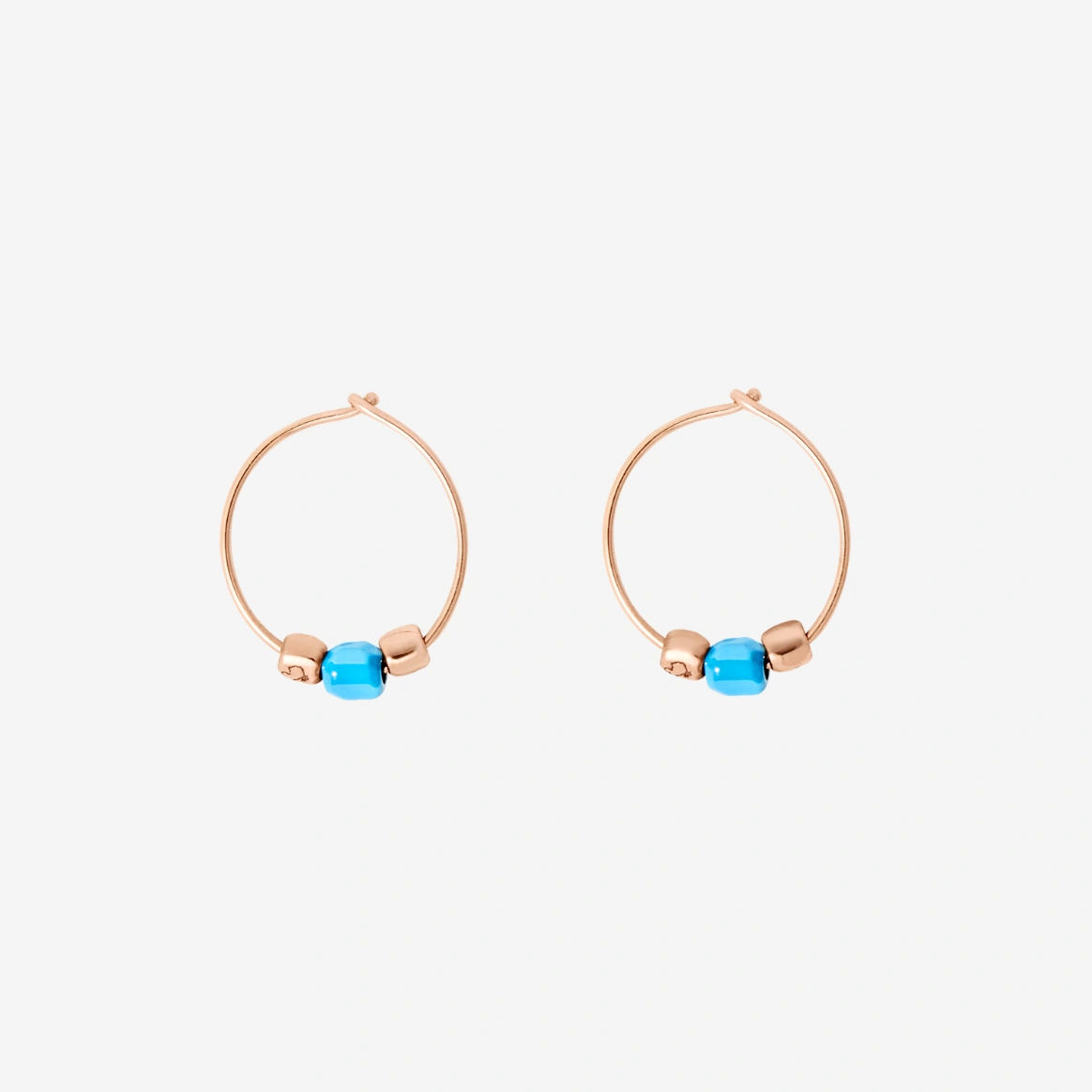 Orecchini cerchio mini granelli in oro rosa 9K e ceramica turchese