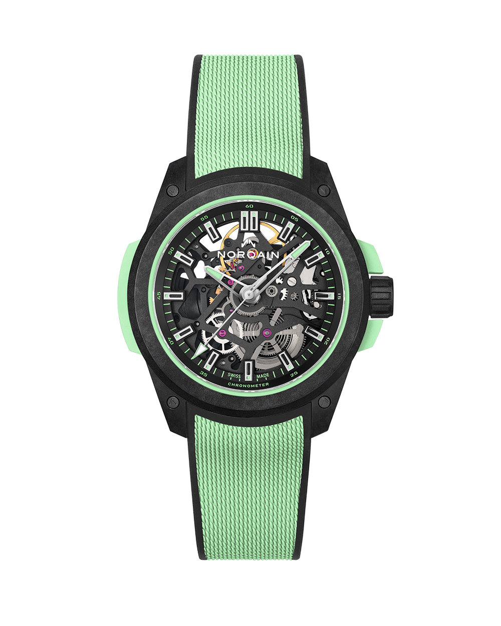 Wild ONE Skeleton 39mm Mint, quadrante nero, cinturino in caucciù verde, fibbia nera. Edizione limitata a 400 pezzi.