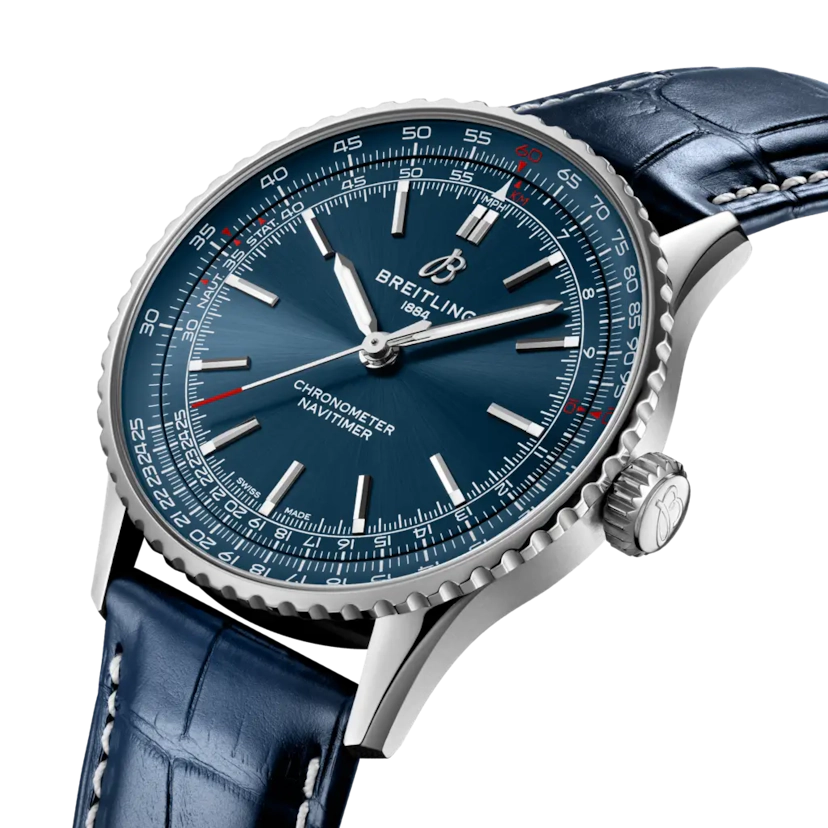 Breitling Navitimer Automatic 41 blu è pensato per chi cerca l’heritage aeronautico Breitling in una forma più sobria, compatta ed elegante. Perfetto per un uso quotidiano, con il fascino di una vera leggenda.