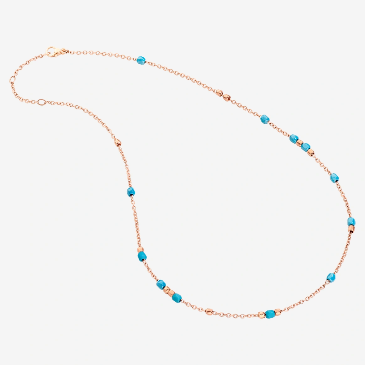 Collana mini granelli in oro rosa 9K e ceramica turchese.