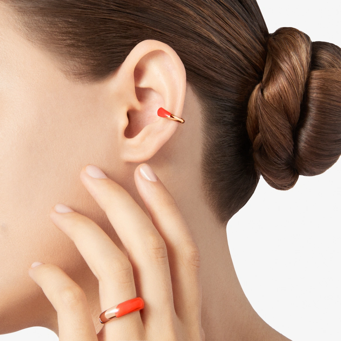Earcuff rondelle in argento dorato oro rosa 18K e smalto rosso.
