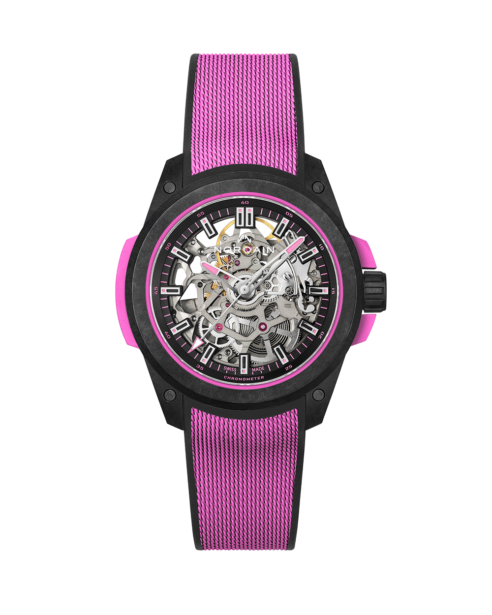 Il modello NORQAIN Independence Wild ONE, realizzato con il nostro materiale proprietario in fibra di carbonio NORTEQ, è l’orologio sportivo per eccellenza. Sei volte più leggero dell’acciaio e 3,5 volte più leggero del titanio, offre una resistenza all’acqua fino a 200 metri di profondità, risultando abbastanza robusto per praticamente qualsiasi attività, sia sulla terraferma che in acqua. Il Wild ONE è stato progettato in collaborazione con Jean-Claude Biver, il team NORQAIN e i migliori fornitori svizzeri.